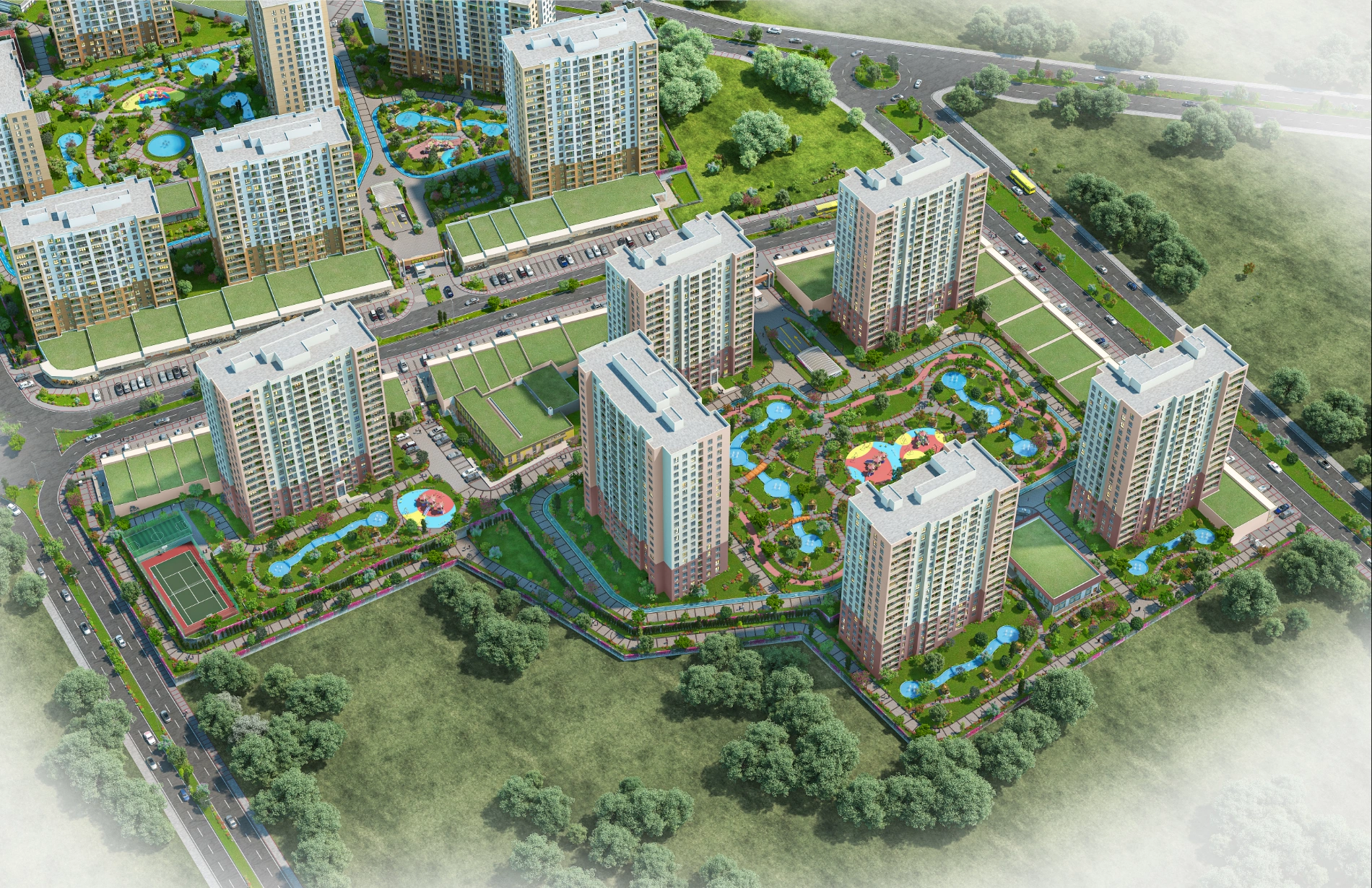 This prestigious residential development rises in Ispartakule, one of Istanbul’s most sought-after neighborhoods on the European side, strategically positioned along the banks of the new Istanbul Canal and overlooking Kucukcekmece Lake. Known for its modern infrastructure, rapid urban development, and government-backed projects, the area offers both high-end living and exceptional investment potential. The project is built on a total land area of 52,000 m² and consists of six residential blocks ranging between 17 and 20 floors, housing 582 contemporary apartments and 55 commercial stores to serve the community. Expansive green spaces covering 40,000 m², complemented by water features and recreational areas, create a harmonious environment where nature, modern architecture, and lifestyle meet.