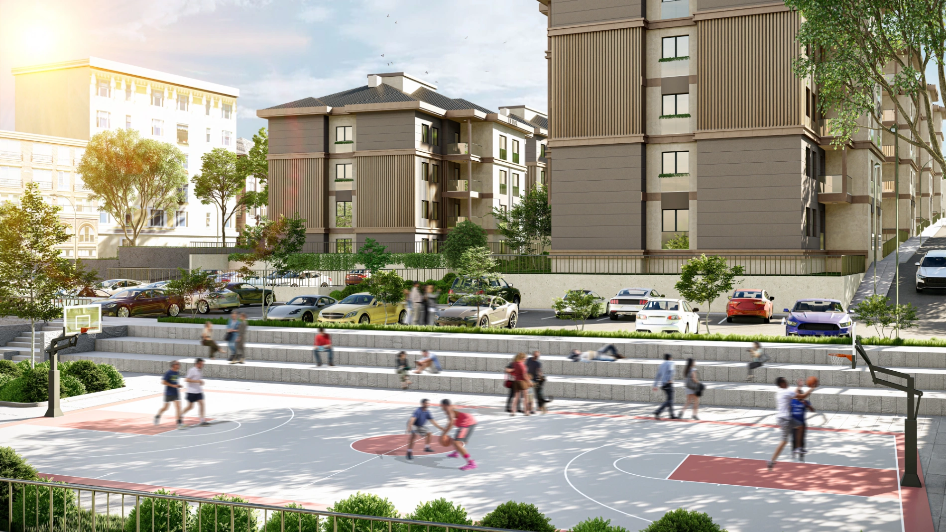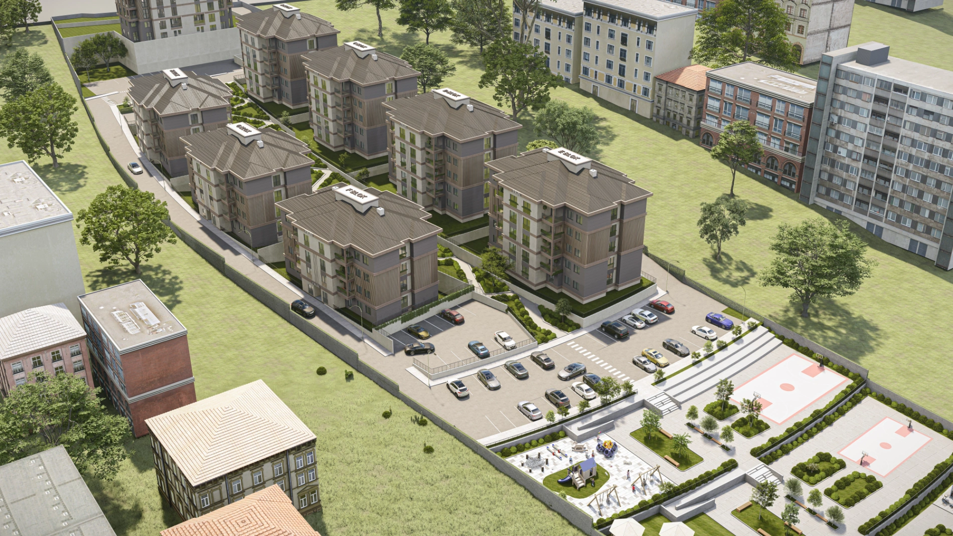 A premium residential development spread across 17,000 sqm, where 70% of the land is dedicated to lush green landscapes and natural surroundings. The project features 11 boutique blocks, each rising only 5 floors high with 4 apartments per floor, creating a low-density and family-friendly atmosphere. In total, 214 modern residences are offered, ranging from practical 2+1 layouts to spacious 3+2 duplexes, many of which enjoy stunning views of Bahçeşehir Gölet Park and the upcoming Istanbul Canal.