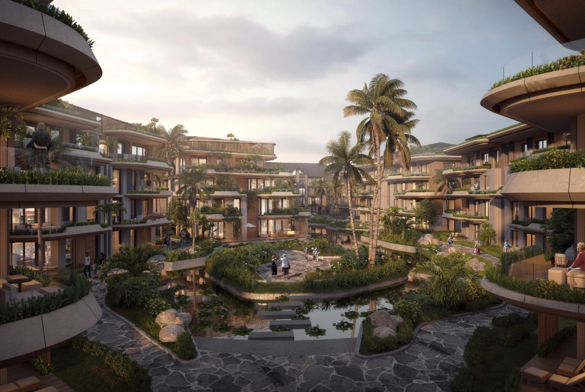 - Artificial lakes and calming water effects all around the yard