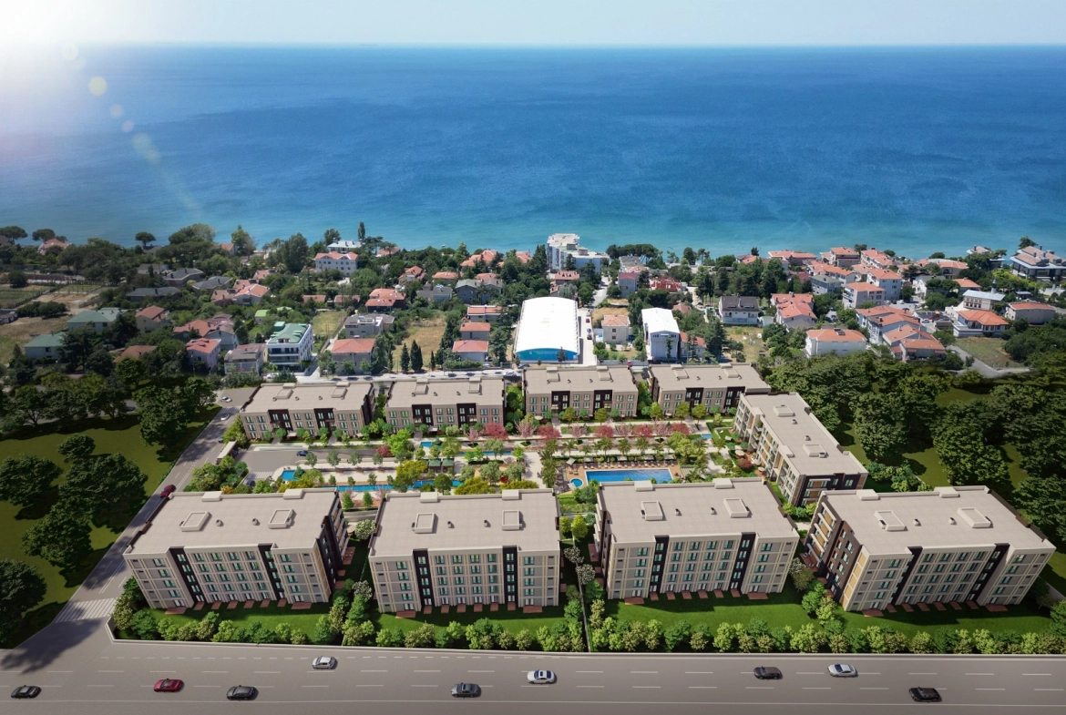 The project is located in the Buyukcekmece area on the European side of Istanbul, which has an increasing investment value in the city. The apartments also have wide and multiple spaces that suit everyone at competitive prices. It has the blue color of the windows intertwined with nature. The project was built on a land area of 23,540 square meters, of which 15,000 square meters are allocated for green spaces. It consists of 9 buildings or residential blocks with a height of 5 floors for each building. The project contains a total number of apartments of approximately 43 residential properties or apartments and 27 A commercial store.