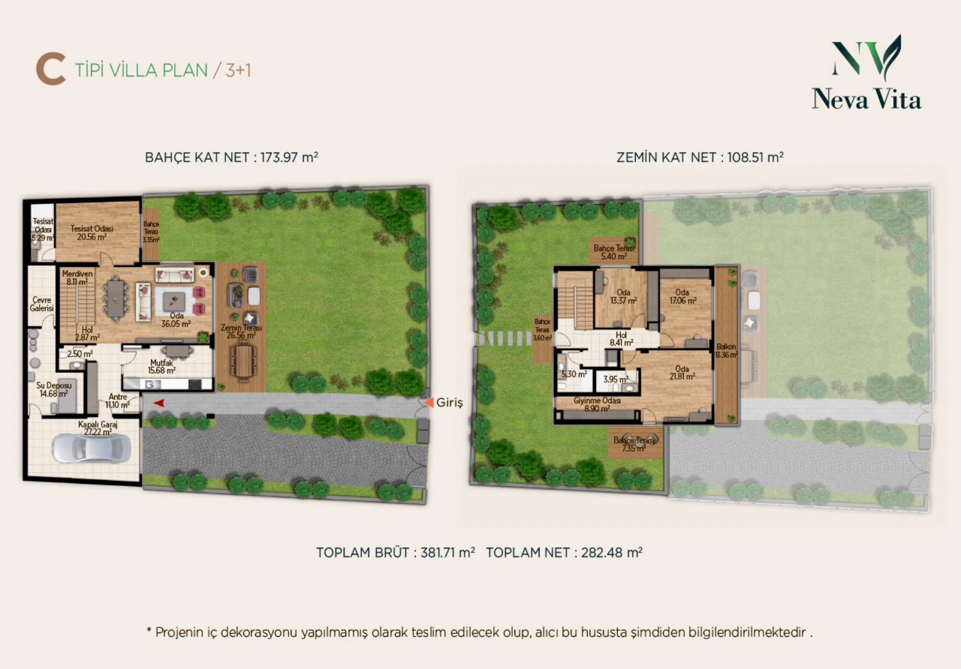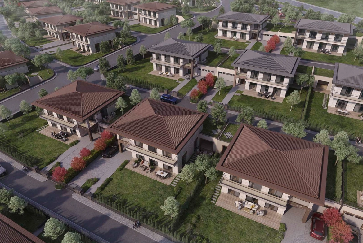 The villa complex project is located in the Büyükçekmece district on the European side of Istanbul, the area known for its wonderful nature and pleasant climate. The Villas complex project was built on a land area of 203,600 square meters, and it consists of 182 two-storey villas of great beauty, splendor and elegance. All villas enjoy a private garden and a panoramic view of the lake. The project is ready to move.