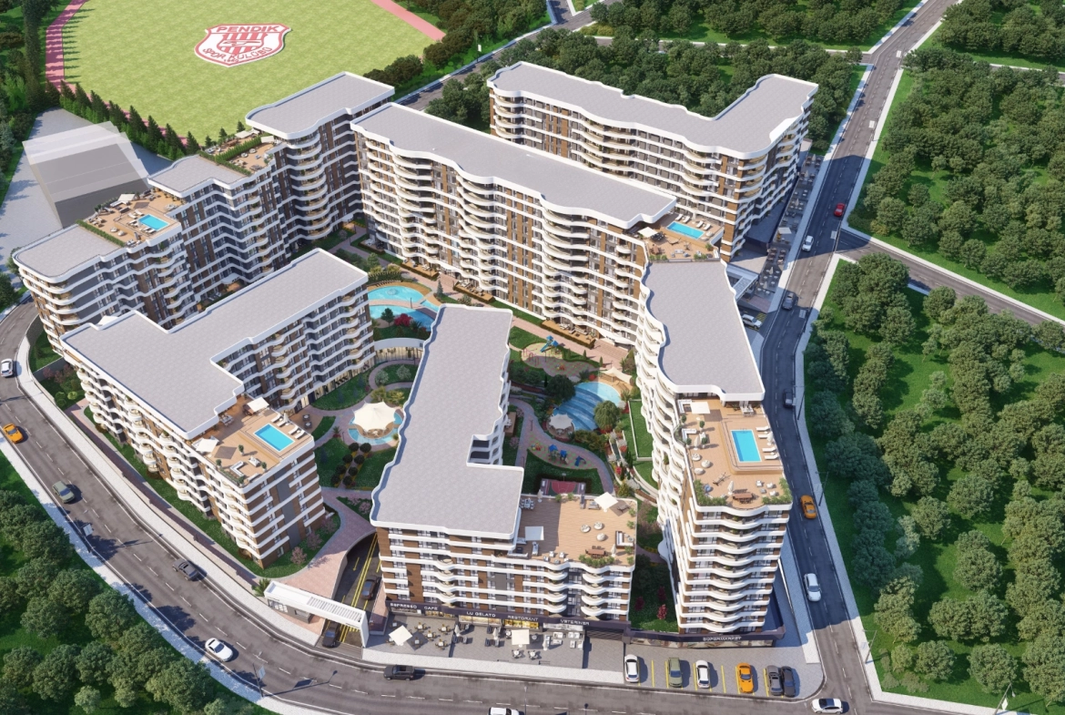 The project is located in the Pendik district of Istanbul’s Anatolian side, places you just minutes away from the sea and beautiful green spaces. It is constructed on a land area of 23,000 square meters. This project with 640 luxury apartments with 22 brand stores invites you to a unique investment. The project is ready to move.