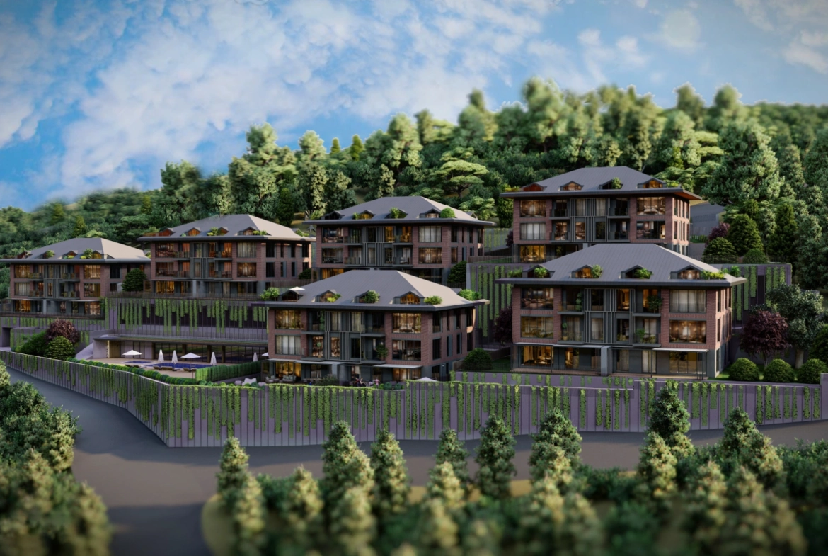 This project is being implemented in Sarıyer, one of the greenest, cleanest and most valuable districts of Istanbul. The residential area, built on an area of 6,534 square meters, adapts to the environment with its architectural texture. There are 6 residential blocks in the project. There are 40 private flats in the project, which offers luxurious options both in terms of architecture and landscaping. Flats built on 2-3 floors are offered with 2+1 and 3+1 options. Flat sizes vary between 128 square meters and 318 square meters.