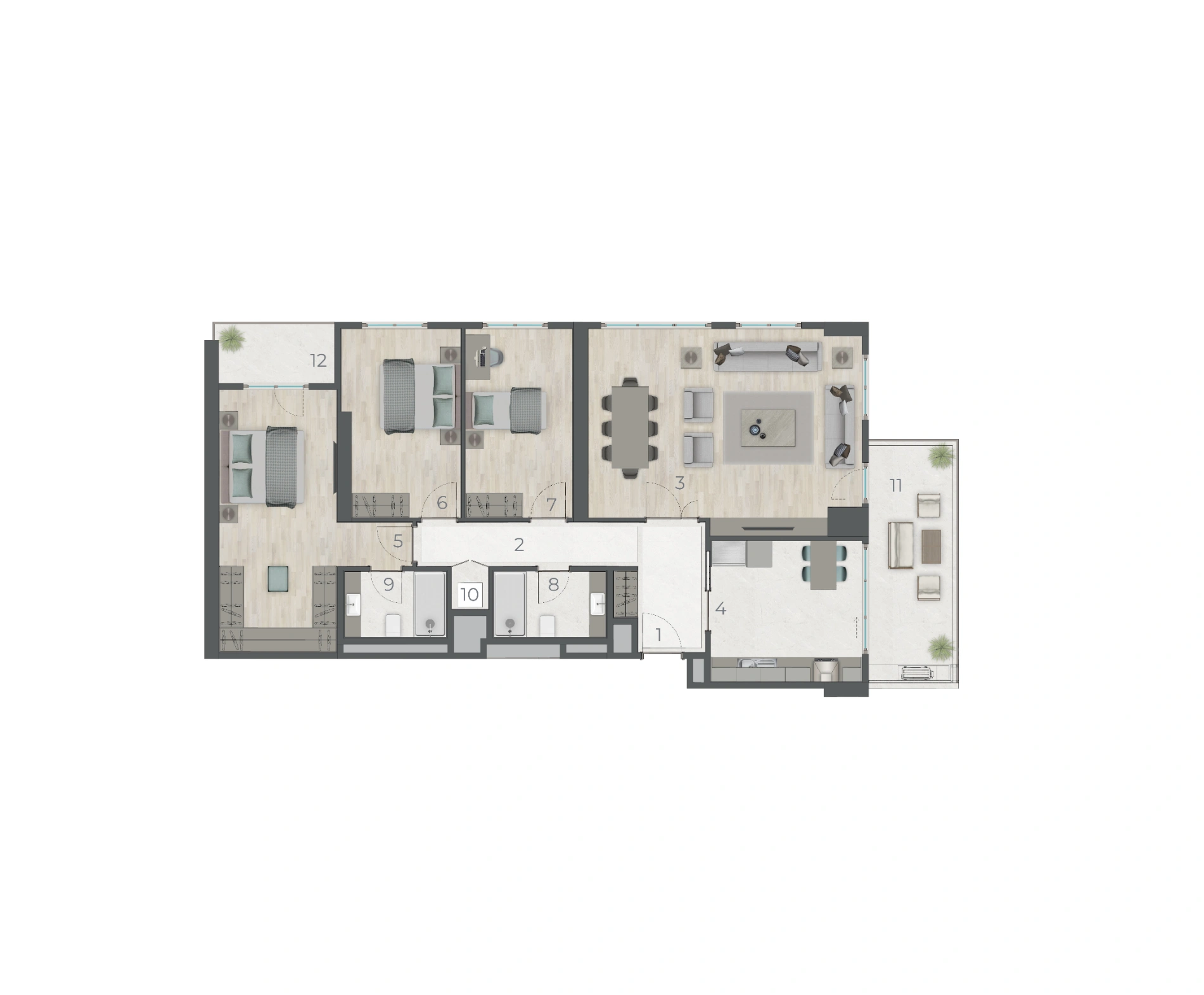 This modern residential development rises in Topkapi, a vibrant and rapidly evolving area in the new section of European Istanbul, offering a central location that combines urban convenience with a dynamic lifestyle. Set within a 156,000 m² area, the project comprises 16 residential blocks housing 1,441 contemporary apartments, alongside a commercial avenue with 170 shops, a 6-star hotel, and a 5-star hotel. Its strategic location provides direct access to the E5 expressway and excellent connectivity to schools, universities, shopping malls, and public transportation, making it an ideal choice for families, professionals, and investors.
